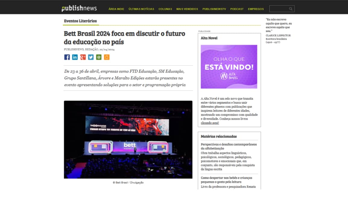 Bett Brasil 2024 foca em discutir o futuro da educação no