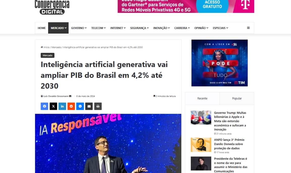 Inteligência artificial generativa vai ampliar PIB do